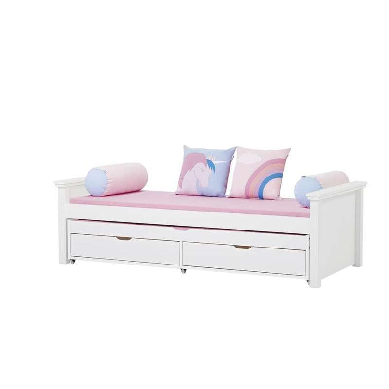 Hoppekids MAJA DELUXE – Juniorseng m. Mellemgavl og Udtræksseng – 90×200 cm. – Hvid